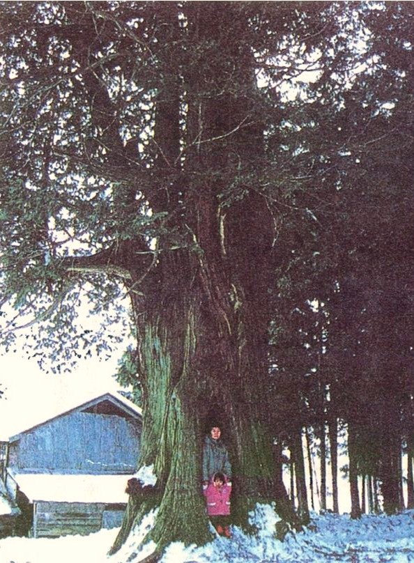 しかし、枯れることもなく、長い年月を風雪に耐えてきた神木である。樹齢800年、目通り7㍍、樹高約25㍍、昭和58年2月県緑の文化財第216号に登録されている。