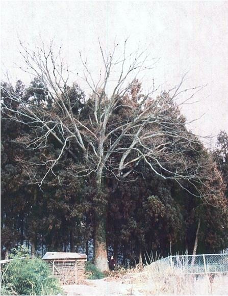 木は推定樹齢300余年を思わせ目通り3.4㍍、樹高20㍍で、農作物の管理の手助けにもなり、南沢集落は昭和52・53年に農林大臣から「繭増産賞」を受け、続いて昭和54年には見事に全国1位の天皇杯を獲得した(当時組合長石塚さん)。